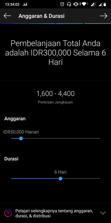 - Langkah kelima. Setelah Anda memilih target audiens, Anda akan dihadapkan pada Anggaran & Durasi. Di sini, Anda bisa mengatur anggaran iklan serta durasi Instagram Ads yang akan ditampilkan pada target audiens.