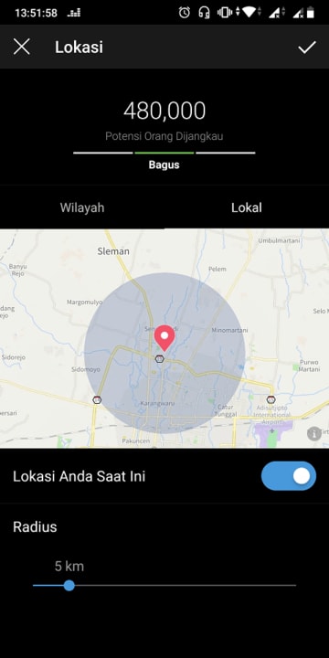 Namun, apabila target audiens adalah orang-orang dalam kota yang sama dengan Anda, pilih saja Lokal.