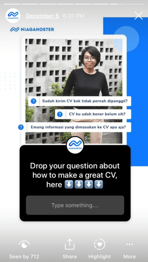 Contohnya bisa Anda lihat pada Instagram Niagahoster. Kami membuat konten yang berisi informasi singkat mengenai berbagai artikel blog beserta link ke sana. Sehingga menarik minat follower untuk menyimpan postingan tersebut apabila mereka membutuhkannya lagi di masa depan.